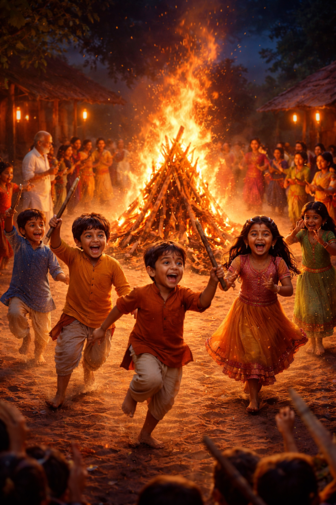इसी घटना के कारण होली की रात्रि में होने वाला हँसी-मज़ाक, शोर, ताली, गीत, बालकों का दौड़ना और प्रतीकात्मक “हुड़दंग” परंपरा बना। यह उच्छृंखलता नहीं, बल्कि राक्षसी शक्तियों को दूर करने का सांस्कृतिक रूप है। शास्त्र निर्देश देता है कि उस रात्रि बालकों की विशेष रक्षा की जाए, उन्हें गुड़ और पक्वान्न दिए जाएँ और घर-आँगन को पवित्र किया जाए। अग्नि, मंत्र और सामूहिक ध्वनि — इन तीनों के समन्वय से भय का शमन होता है और समाज में निर्भयता स्थापित होती है। इसी कारण होलिका-दहन केवल दहन नहीं, बल्कि सामूहिक हर्ष-ऊर्जा का उत्सव है, जिसमें बालकों का चंचल उल्लास भी धार्मिक विधान का ही अंग माना गया है।