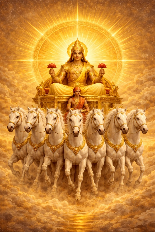 - “सूर्य आत्मा जगतस्तस्थुषश्च” (ऋग्वेद) – वेदवचन के अनुसार भगवान सूर्य सम्पूर्ण चराचर जगत की आत्मा हैं। स्थावर और जंगम — दोनों प्रकार की सृष्टि में जो जीवन, गति और चेतना कार्य करती है, वह सूर्यतत्त्व से ही सम्भव है। उदयकाल से अस्तकाल तक सूर्य ही दैनिक सृष्टि के उद्भावक, जाग्रतकर्ता और संचालक माने गये हैं। रात्रिकाल में जीवों के शयन के पश्चात् उन्हें विश्राम देने वाला तत्त्व भी सूर्यदेव को ही माना गया है