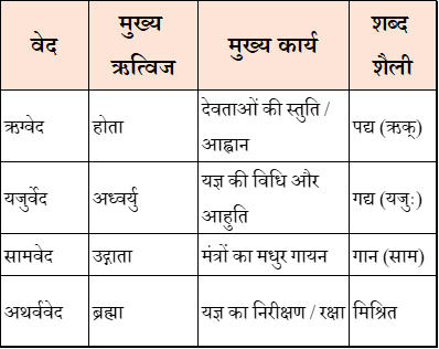 चार वेदों का विभाजन में मुख्य विषय (यज्ञीय विज्ञान)